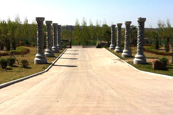 園區依山傍水,青山碧水掩映其中。石雕與槐樹根的相互輝映,傳統的古典建筑和現代化互相交替,優雅的庭院景色配以開闊的綠樹草坪,加上秀美的園林格局以及風格迥異的藝術浮雕,使整個陵園氣勢恢宏、風范典雅、靈氣聚現。園門處聳立著八根巨型龍柱,兩只威武的漢白玉獅王鎮守左右;宏偉的牌樓前四只石獅臥守陵園。園內綠樹成蔭,假山噴泉點綴其中,二十四孝長幅石雕橫跨園中,六萬多平方米的綠化、草坪、廣場(其中有一萬多平方米的大型停車場)及兩座大型放生池。毛主席時期修建的東風渠橫跨本陵園,渠里流淌著來自******景點廣勝寺的泉水,滿目的紅花綠草、亭臺樓閣、小橋流水,自然美景映襯著人文景觀。